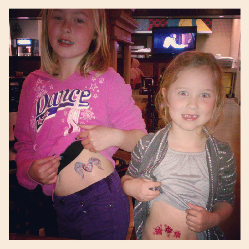 I told the girls they could put their fake tattoos on anywhere but their face.This is where they chose. I am officially scared.to.death.